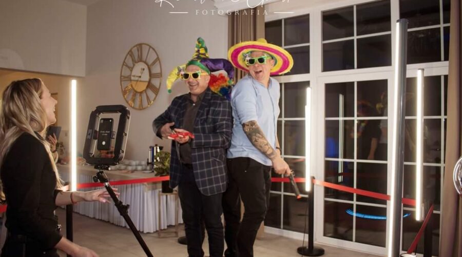 Fotobudka 360 najlepiej sprawdza się po pierwszym tańcu, kiedy goście są już rozluźnieni i chętnie bawią się na parkiecie. Filmy w eleganckich strojach weselnych, z gadżetami i w grupach znajomych wyglądają efektownie i zostają jako pamiątka z całego wieczoru.